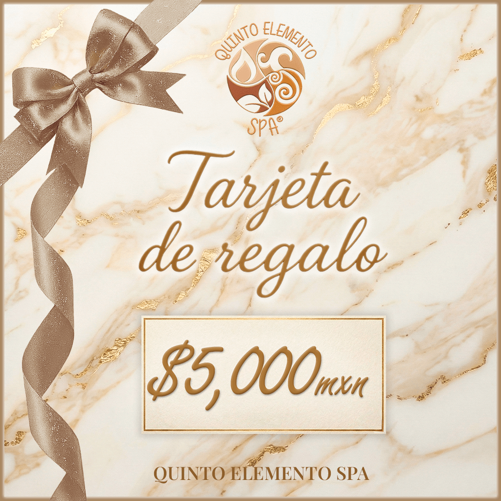 Regale una experiencia de bienestar en Quinto Elemento Spa MX. Nuestro certificado de regalo puede utilizarse en masajes, faciales holísticos y rituales de relajación, para que cada persona elija el tratamiento que más necesita.